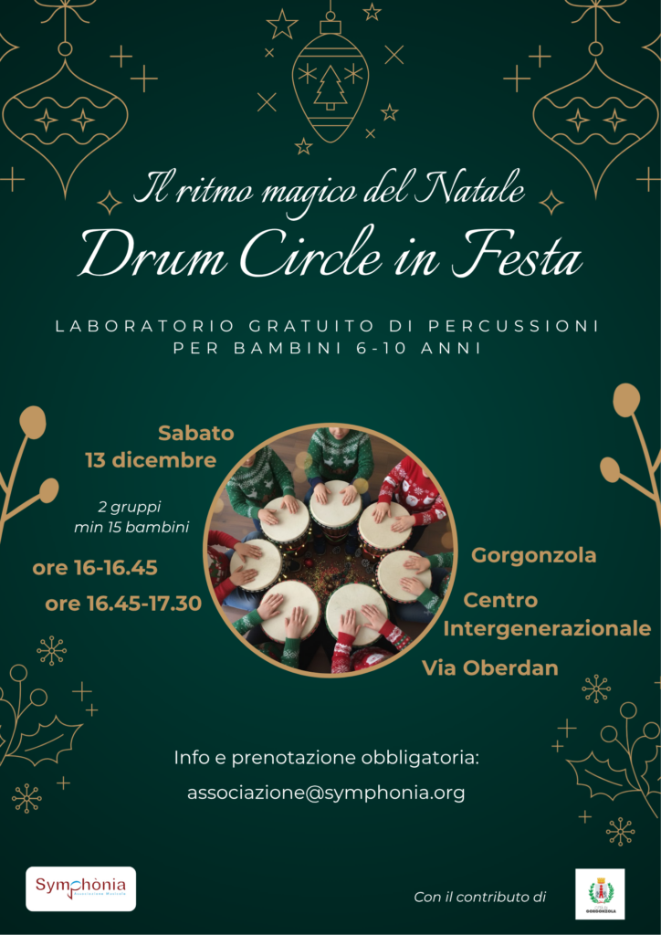 In occasione delle festività natalizie, Symphònia propone un laboratorio di Drum Circle, un’esperienza in cui il gruppo di partecipanti si trasforma in un’orchestra ritmica collaborativa, celebrando il Natale attraverso suoni, canti e giochi.