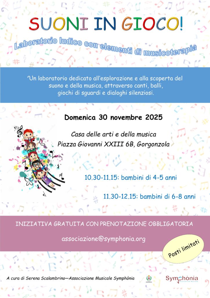 Per Santa Caterina Symphònia propone un laboratorio ludico con elementi di musicoterapia, dedicato all’esplorazione e alla scoperta del suono e della musica, attraverso canti, balli, giochi di sguardi e dialoghi silenziosi.